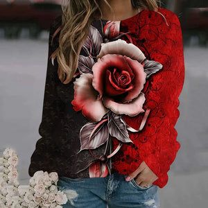 Rose Flower Sweatshirts Floral 3D Print Hoodies Women